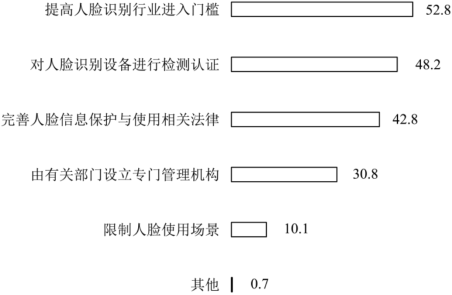 公众对规范智慧城市中人脸识别技术应用的看法(%)